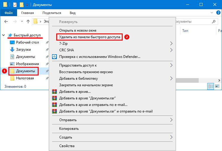 Вариант хорош в тех случаях, когда вам необходимо избавиться от отдельных элементов, которые система добавила в быстрый доступ.