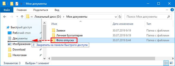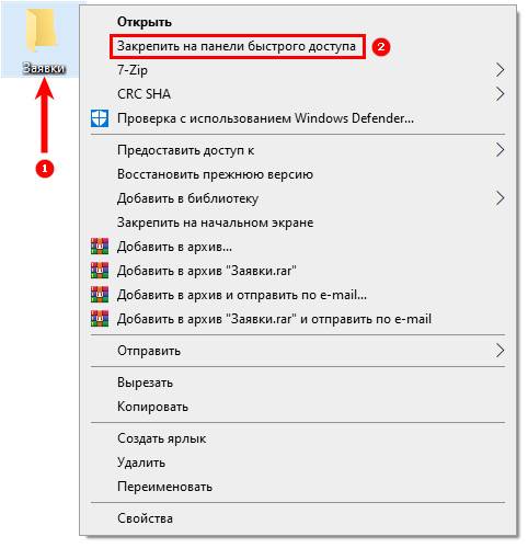Если какую-то папку хочется постоянно видеть закрепленной на панели, то ее можно закрепить при помощи соответствующего пункта. Достаточно клацнуть по ней правой кнопкой мыши и выбрать нужный пункт в меню, тоже самое можно проделать и с файлами.