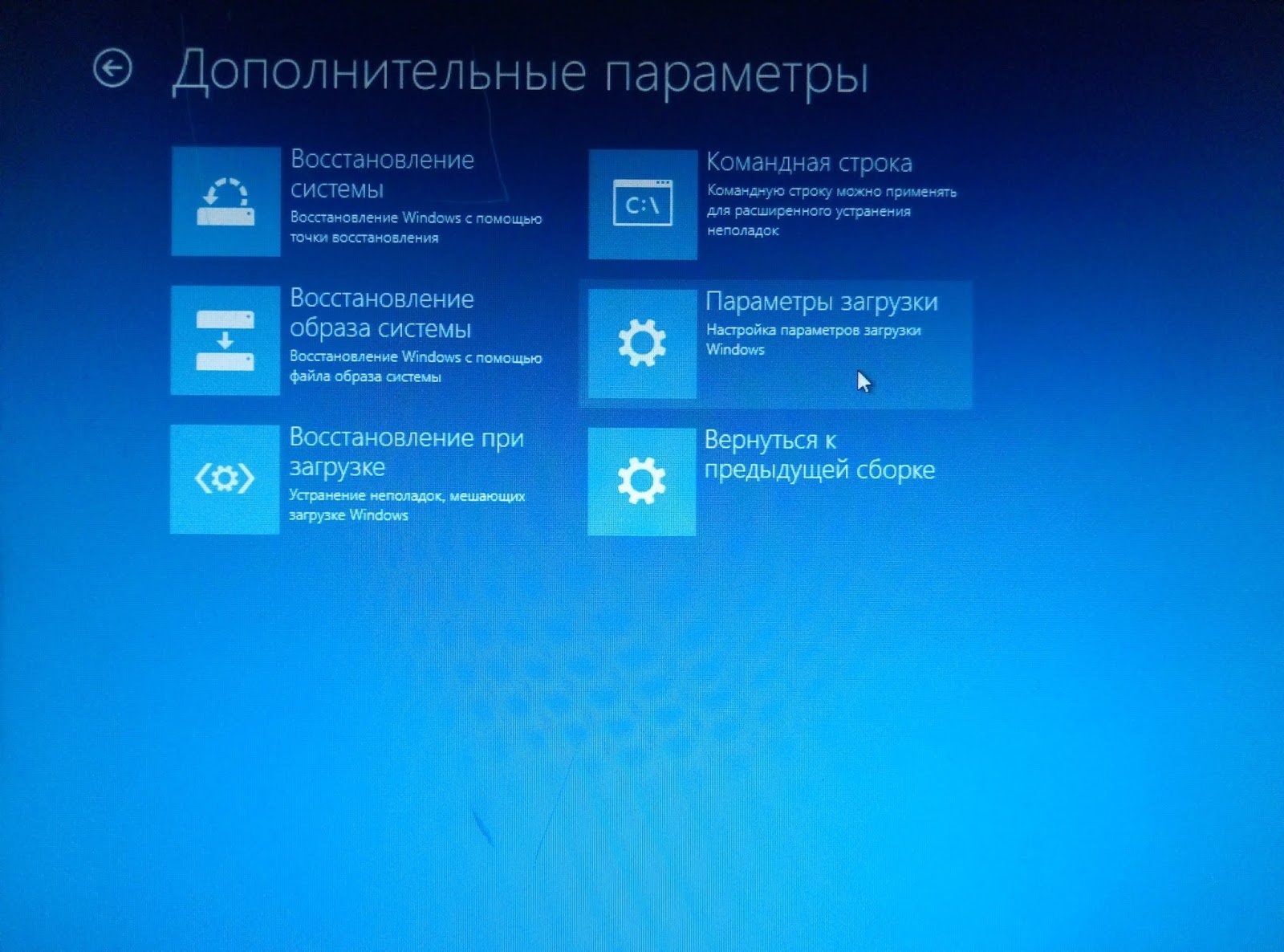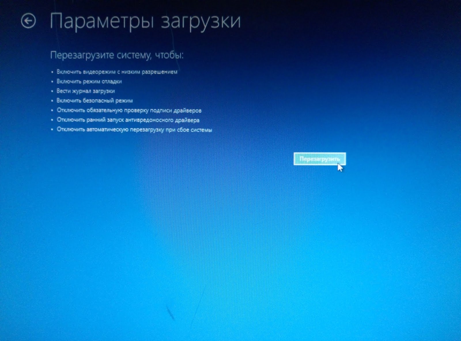 5) Дождавшись перезагрузки компьютера, в появившемся меню выбираем пункт Параметры загрузки