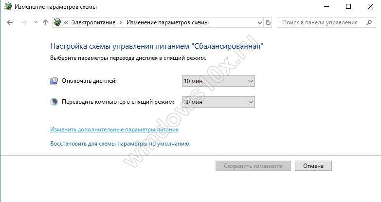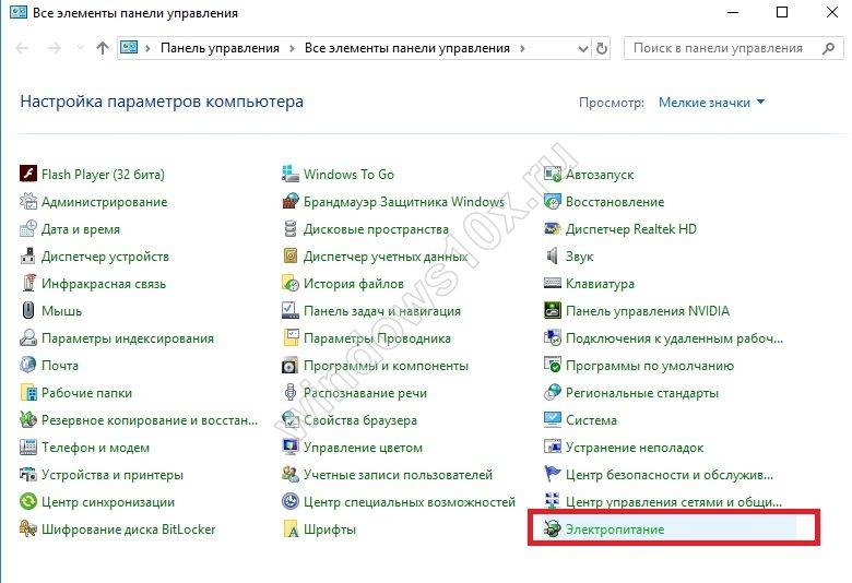 - перейти в раздел электропитания;