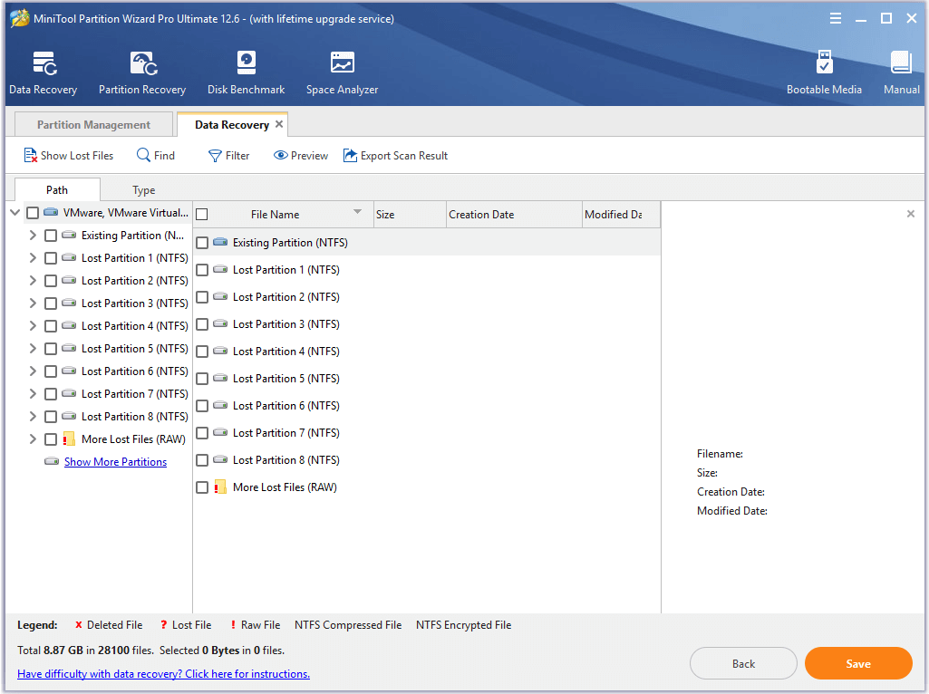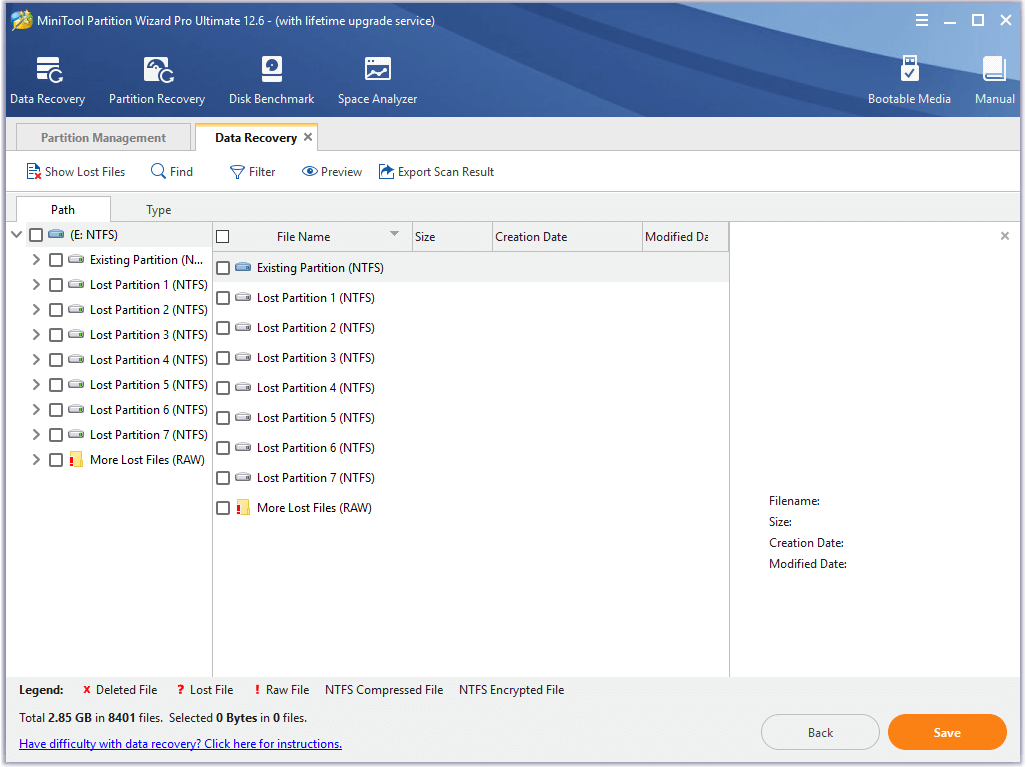 2) There are errors in the path selected for recovered files. In this case, please right-click an individual file and recover it to the root directory of a drive to see whether it is there. If you have already closed the program, you can relaunch, choose the function you used to scan the drive and load previous scanning results.