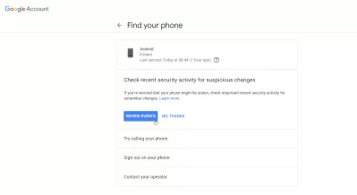 Возможности проверки активности безопасности телефона, попытки позвонить на свой телефон, удаленного выхода из системы и связи с оператором. ⦿ CC BY