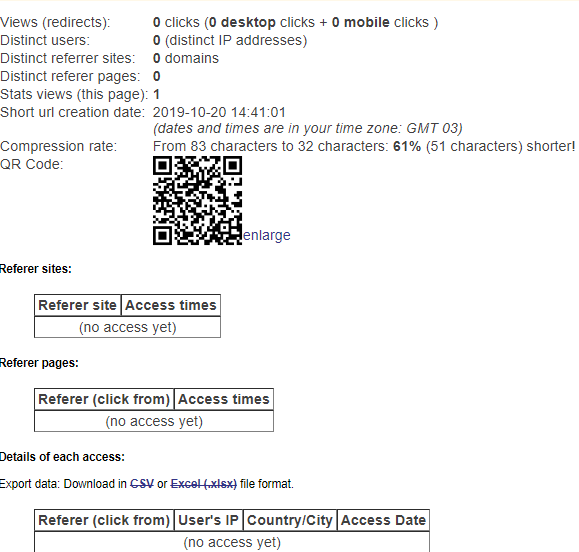 В результате сервис выдал нам 2 ссылки и QR-код. Первая ссылка – это наш короткий URL, а вторая – это ссылка на статистику.