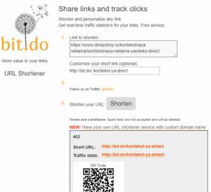 Давайте проверим сервис и попробуем сократить ссылку https://www.obrazstroy.ru/kontekstnaya-reklama/kontekstnaya-reklama-yandeks-direct/ и задать ей сокращенное имя.
