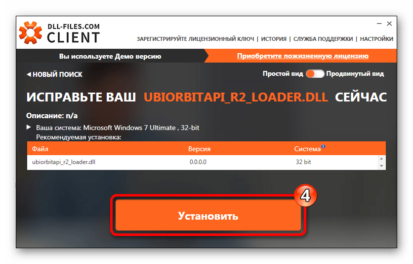 Клиент DLL-Files.com представляет собой вспомогательное приложение одноименного портала, разработанное специально для удобства инсталляции. Он имеет обширную базу, в которой есть и ubiorbitapi_r2_loader.dll.
